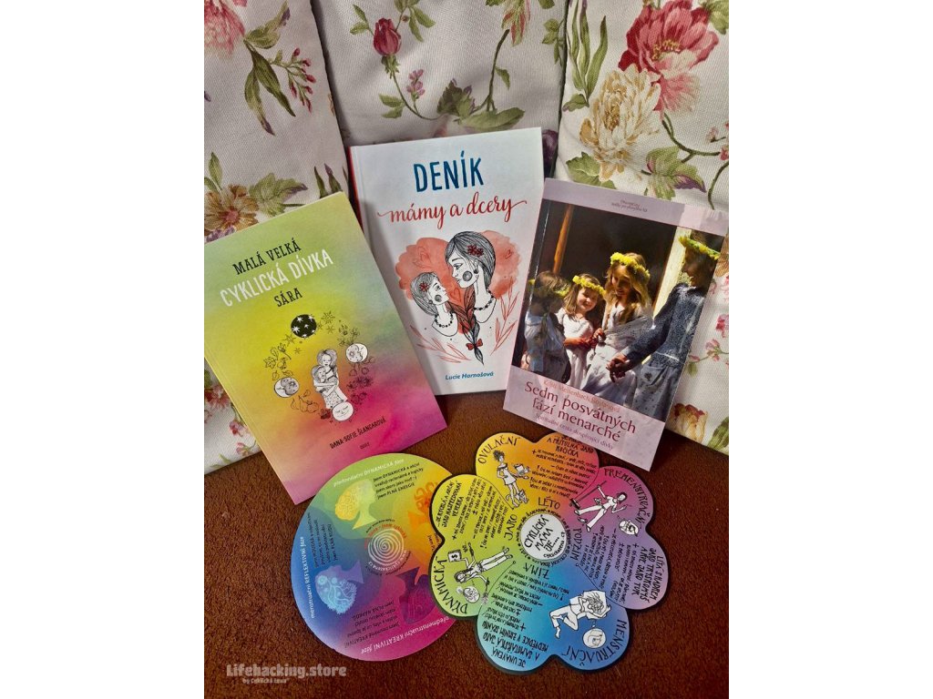 knihy: Malá velká cyklická dívka Sára + Sedm posvátných fází menarché + Deník mámy a dcery