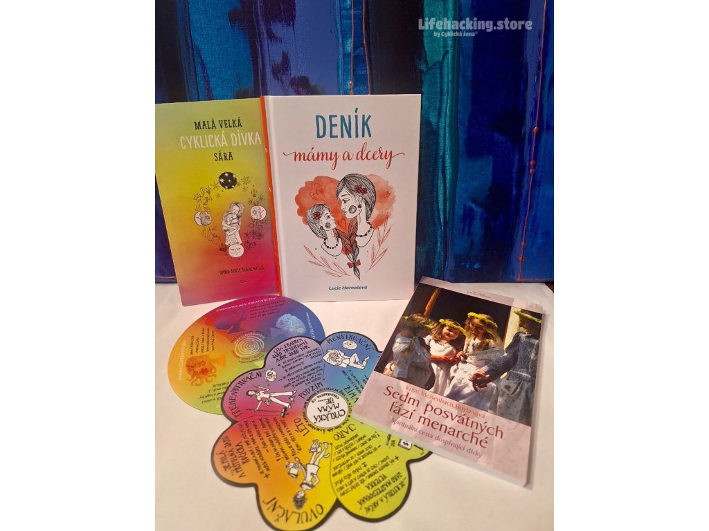 Tuto sadu jsem pro vás (já, Dana-Sofie Šlancarová, zakladatelka projektu Cyklická žena®:-) vybrala speciálně na základě zkušeností z mnoha let pořádání svých kurzů Cyklické mámy a dcery tak, aby obsahovala vše podstatné, co ocení jak mladé dámy v období své první menstruace, tak jejich maminky (a krapet i tatínkové), které rovněž mají spoustu otázek.